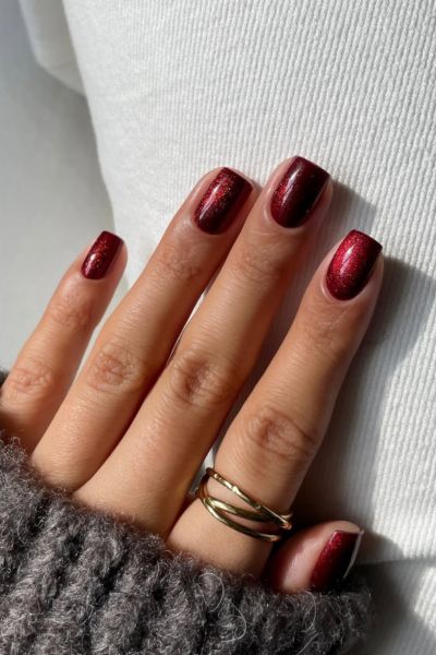 Nothing like sultry ruby red nails for Christmas that are classy and glamorous. Whether you go for a glossy finish or add some sparkle with glitter, these nails will definitely make a statement at any holiday party!